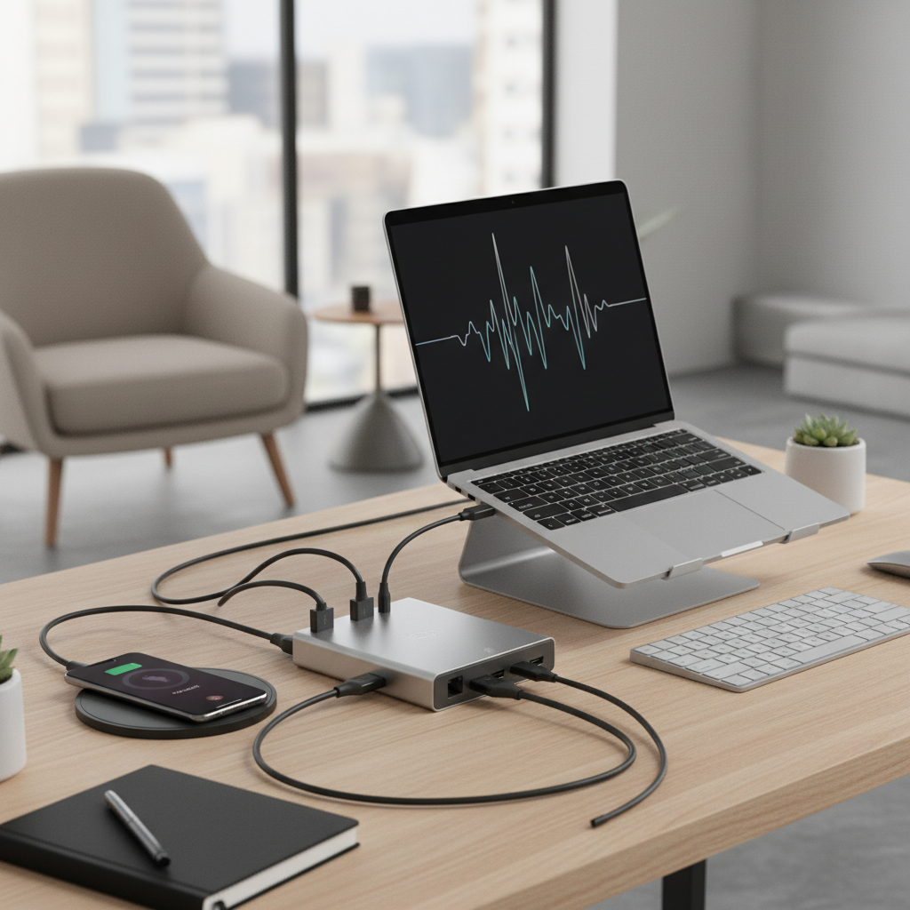 There's a moment in every remote worker's life when they look at the tangle of cables running from their laptop and think: there has to be a better way. A monitor cable, a charger cable, a USB cable for the webcam, another for the microphone, maybe an Ethernet cable for reliable internet. Every morning you plug in four to six cables, and every evening you unplug them. It's tedious, it wears out ports, and it looks terrible.
